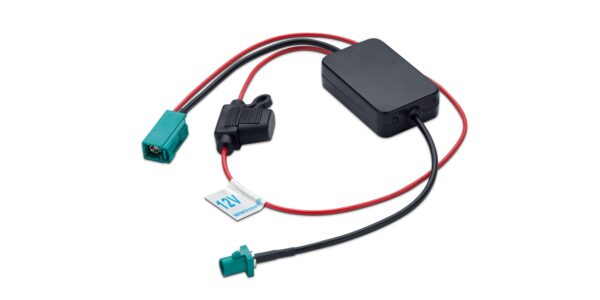 •Features:FAKRA II ConnectorImprove the signal reception of vehicle-mounted equipmentVery low external component countEasy to assemble, saving cost and spaceDC and AC short circuit protection, ensure safe operationWorks for both AM and FM radio stationsRed wire connects to power antenna lead or 12V sourceVoltage: 12V